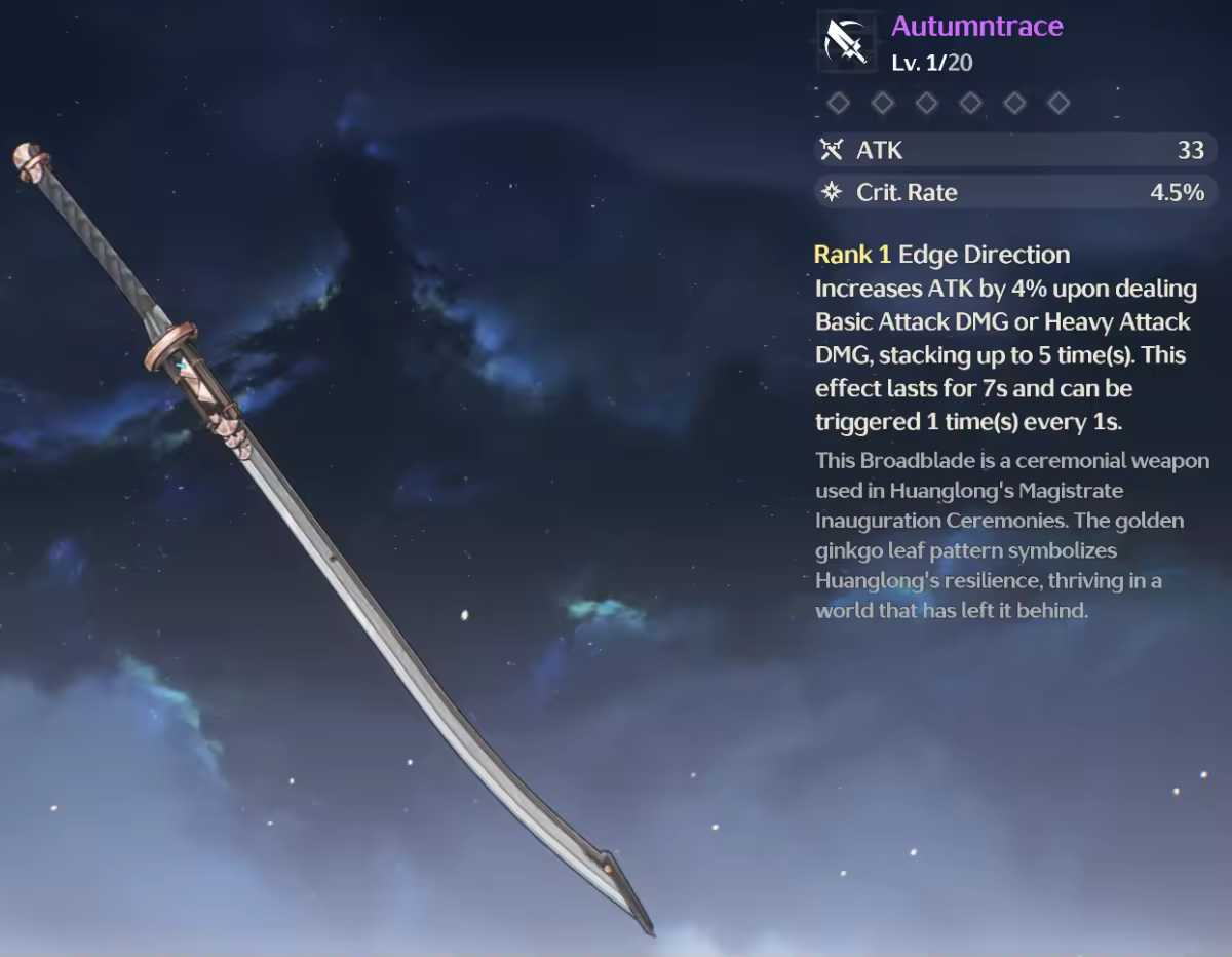 2. Increases ATK by 4% upon dealing Basic Attack DMG or Heavy Attack DMG, stacking up to 5 time(s). This effect lasts for 7s and can be triggered 1 time(s) every 1s.