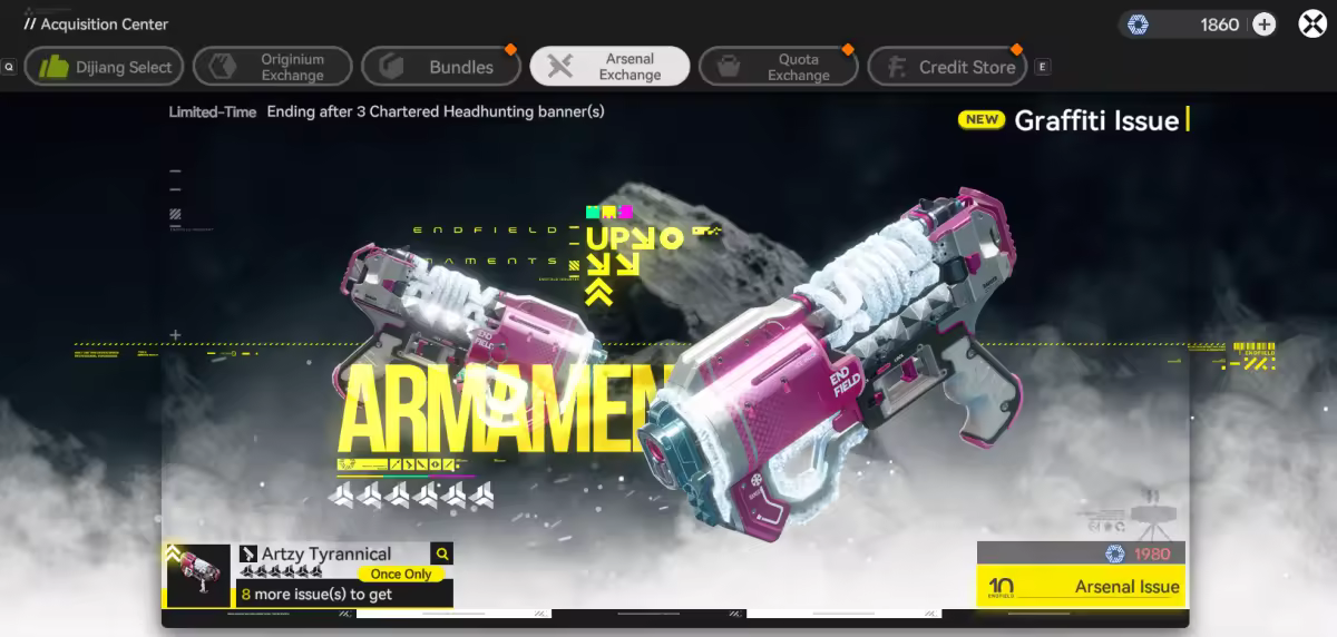2. Is it easy to get weapons from the Arsenal Exchange? Not really. The formula is clear: the byproduct of 200 operator headhuntings only equals about one guaranteed weapon. Relying solely on the byproduct from operator headhuntings to get exclusive weapons for all operators is nearly impossible. Also, Oroberyl itself cannot be used to pull weapons; you can only exchange limited Origeometry for Arsenal Ticket, and the exchange rate is very low.