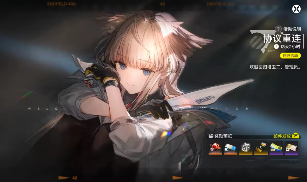 First, let's take a look at the Endfield Return System. The conditions to trigger the Return System are: the Endministrator's permission level must be at least level 3, the first chapter of the main storyline must be completed, the player must have been offline for at least 21 consecutive days, and at least 42 days must have passed since the last participation in the Return System.