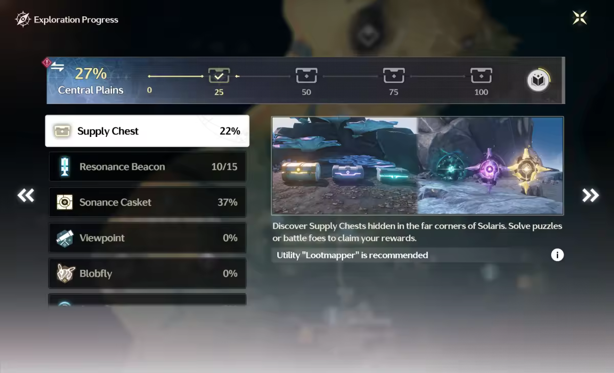 Systematically advancing map quests and activating key points are another essential pillar for increasing exploration. Players should open the map and actively seek out and activate all locations of Resonance Beacon ; lighting up beacons itself contributes to exploration progress. Actively accepting and completing various quests on the map, interacting with related NPCs, and solving puzzles are also crucial steps for steadily increasing exploration values. Specific areas in the game often hide unique collectible elements, such as items called Sonance Casket or Rare Treasure Chests, as well as Puzzle and Viewpoints. Discovering and obtaining these special collectibles can significantly boost exploration progress.